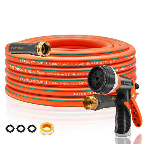 FXFOUCS Heavy Duty Garden Hose 5/8 Inch Flexible, Lightweight Hybrid Hose with 600 PSI Burst Pressure, Swivel Handle,All-Weather Water Hose, Durable Copper Male/Female Fittings (orange 50FT)